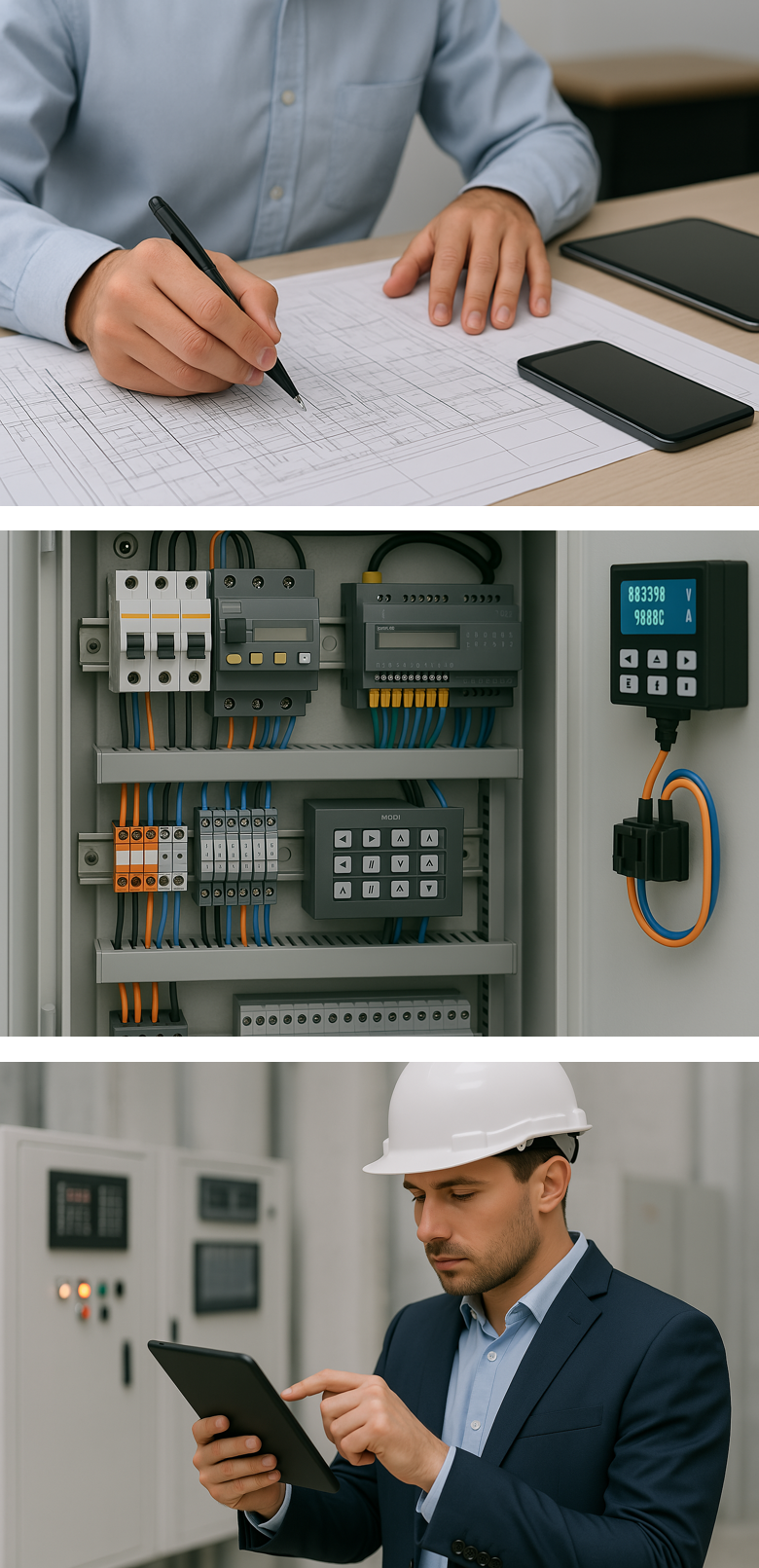 Soluções desenvolvidas: ➤ Projetos e montagem de painéis elétricos de comando e distribuição ➤ Dispositivos de proteção (DR, DPS, disjuntores) e seccionamento ➤ Sistemas de controle automatizado com CLP, IHM e sensores ➤ Automação de processos industriais (motores, bombas, iluminação, climatização) ➤ Instalação e configuração de sistemas supervisórios (SCADA) ➤ Sistemas de monitoramento de energia com integração a IoT ➤ Controle de demanda e eficiência energéticaOferecemos consultoria técnica estratégica para empresas que necessitam melhorar, corrigir ou ampliar suas instalações elétricas e sistemas automatizados. Nossa atuação é voltada para a análise crítica, conformidade legal e aumento da eficiência operacional.